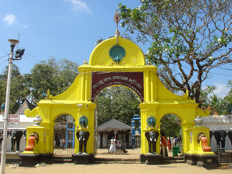 Kataragama is a pilgrimage town sacred to Buddhist, Hindu and indigenous Vedda people of Sri Lanka. People from South India also go there to worship. The town has the Ruhunu Maha Kataragama devalaya, a shrine dedicated to Skanda-Murukan also known as Kataragamadevio. Kataragama is in the Monaragala District of Uva province, Sri Lanka. It is 228 km ESE of Colombo, the capital of Sri Lanka. Although Kataragama was a small village in medieval times, today it is a fast-developing township surrounded by jungle in the southeastern region of Sri Lanka. It houses the ancient Kiri Vehera Buddhist stupa. The town has a venerable history dating back to the last centuries BCE. It was the seat of government of many Sinhalese kings during the days of Rohana kingdom. Since the 1950s the city has undergone many improvements with successive governments investing in public transportation, medical facilities, and business development and hotel services. It adjoins the popular Yala National Park.